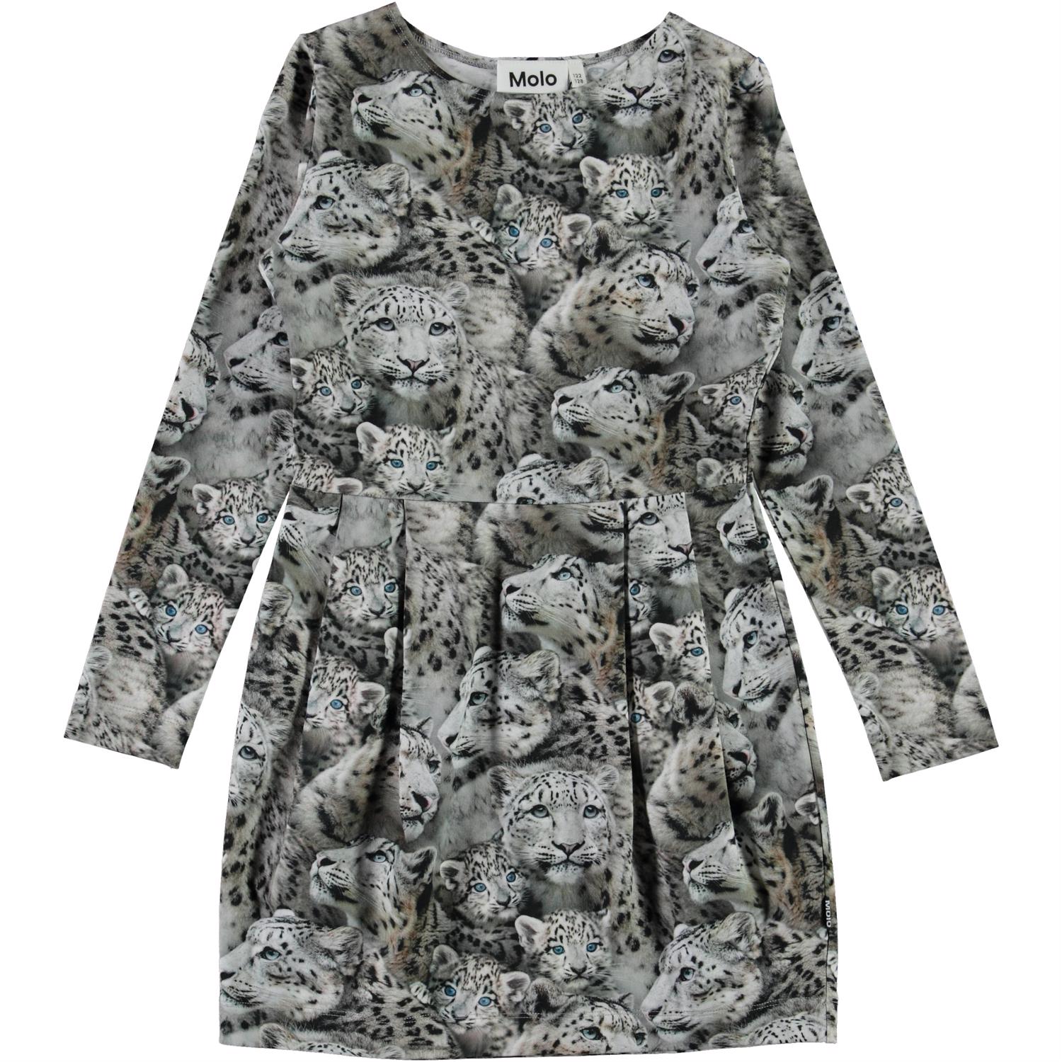 Cindarell is een jurk met lange mouwen en een sneeuwluipaard print. De jurk heeft lange mouwen en is aansluitend zonder strak en nauwsluitend.