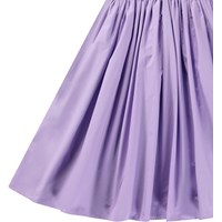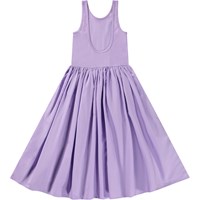 Purple mouwloze jurk van biologisch katoen met een volumineuze poplin rok. De top van de jurk sluit aan en heeft een ronde hals en is laag uitgesneden.