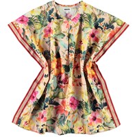 Corliss is een luchtige, zomerse kaftan jurk met bloemenprint. De jurk heeft aan de zijkanten gestreepte banden met glitter. De jurk is van 100% katoen.