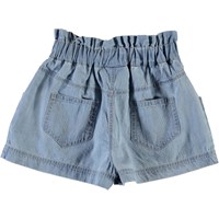 Adara is een lichte jeans short met een hoge elastische taille. Het heeft voor- en achterzakken.