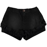 Agnetha is een zwarte korte broek met ruches. De korte broek heeft een sportief silhouet, waarbij de zijkanten van de broek iets korter zijn.