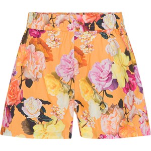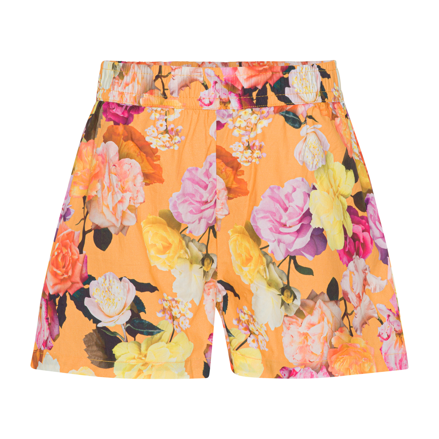 Air is een oranje short van biologisch katoen. De short heeft een elastische taille en is in de Clementine Roses print, waarop alle tuinrozen in allerlei kleuren staan.