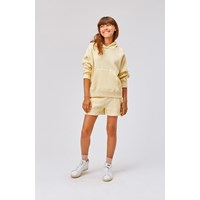 Alida is een lichtgele korte broek in een wafelstructuur van biologisch katoen. De korte broek heeft diepe zakken met zichtbare stiksels. Het heeft elastiek met koordjes in de taille. Draag Alida met de bijpassende Minelli hoodie voor een complete outfit.