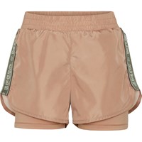 Omari is een sportbroekje in twee lagen in lichtroze en beige met een tekst aan de zijkant van de pijpen. Het Omari sportbroekje zorgt voor comfort en flexibiliteit zodat je kunt bewegen zonder zorgen. Dit sportbroekje maakt deel uit van Molo's sportcollectie, die mode en sport naadloos laat aansluiten. Draag Omari met een van Molo's sporttopjes voor een complete en sportieve look. Molo’s sportcollectie is gemaakt met een unieke en hoogwaardige technologie genaamd HeiQ Smart Temp, die het lichaam ondersteunt om af the koelen. De afkoelfunctie wordt geactiveerd wanneer het lichaam warm en zweterig is. Het wordt gedeactiveerd wanneer het lichaam is afgekoeld. HeiQ Smart Temp zorgt voor optimaal comfort en prestaties. Het is onafhankelijk getest om er zeker van te zijn dat het veilig is voor de huid.