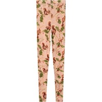 Roze legging gemaakt van merinowol in een aansluitende pasvorm met een eekhoornprint, een elastische tailleband voor comfort en om gemakkelijk aan te trekken. Combineer het met een sweater in dezelfde kleur voor een complete set.