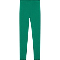 Groene legging van zachte stretch viscose. Het heeft een elastische taille en een klein logo op de voorkant met de woorden 'More love'. Het is nauwsluitend comfortabel en gemakkelijk aan te trekken.