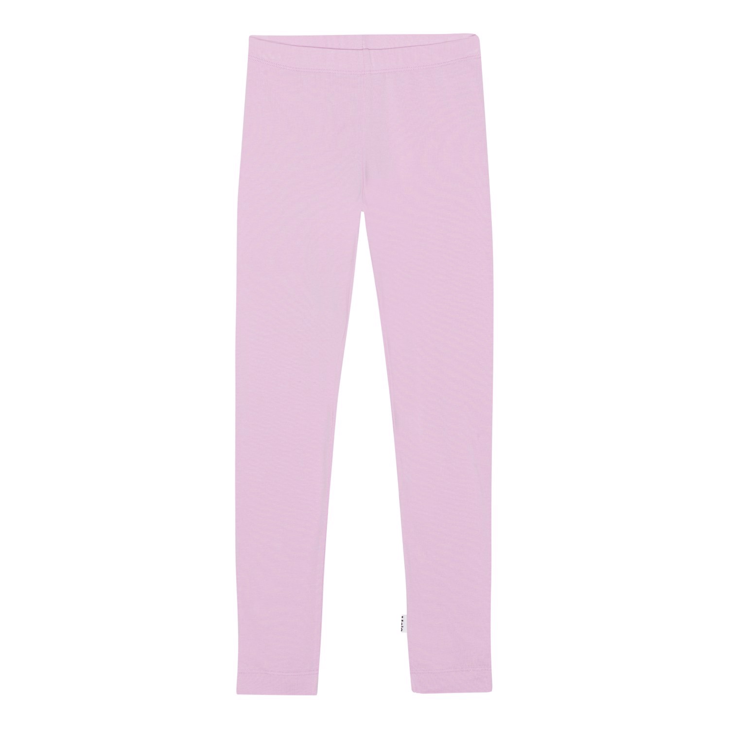 Paarse legging van biologisch katoen. Het is nauwsluitend comfortabel en gemakkelijk aan te trekken.
