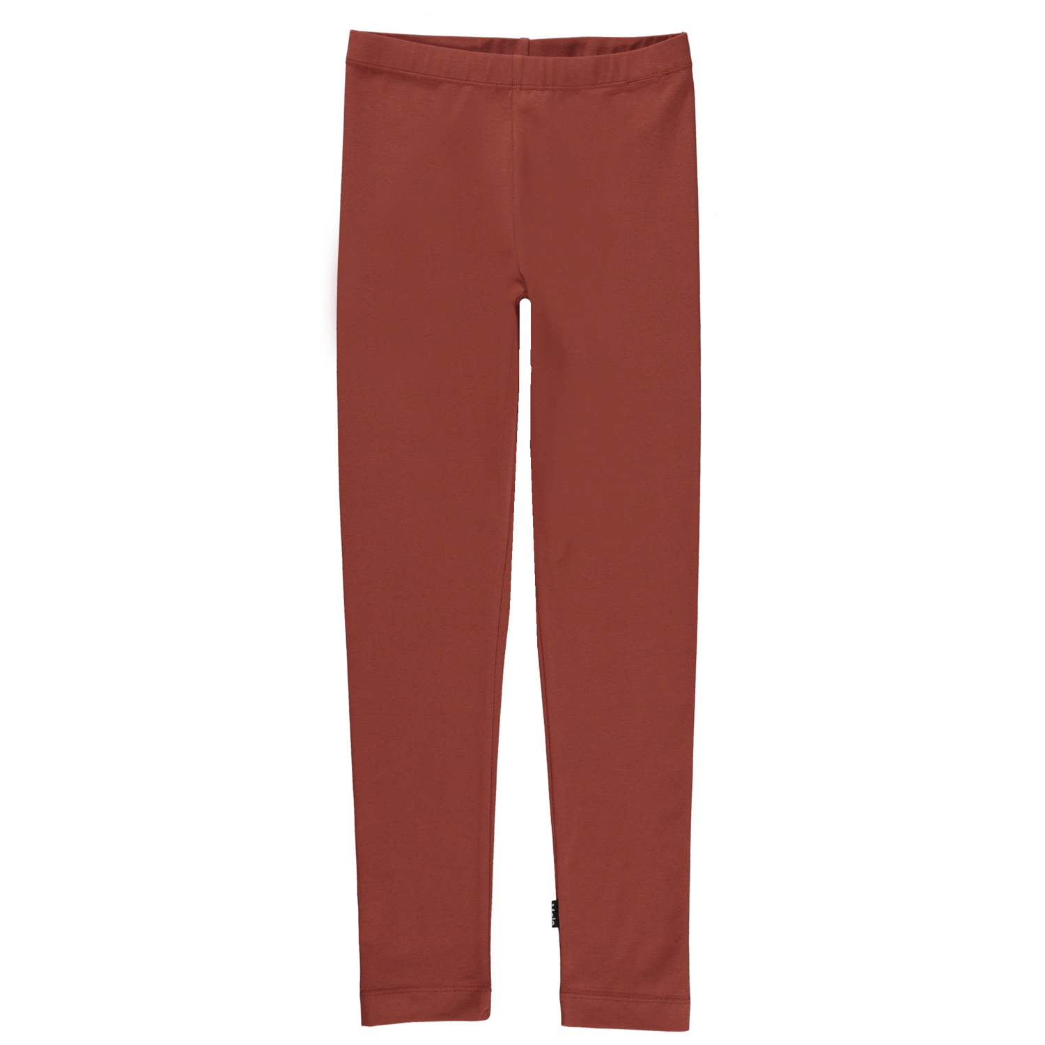 Een van Molo's meest populaire basisstijlen! Nica is een rood/bruine legging met elastiek in de taille en gemaakt van biologisch jersey katoen.