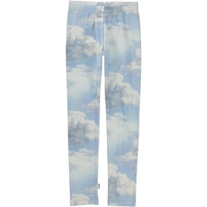Een van Molo's meest populaire stijlen! Niki is een lichtblauwe legging met elastiek in de taille en gemaakt van biologisch jersey katoen. Niki is in de Clouds print waarop zachte witte wolken op een blauwe lucht staan.