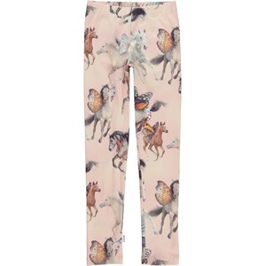 Een van Molo's meest populaire stijlen! Niki is een roze legging met elastiek in de taille en gemaakt van biologisch jersey katoen. Niki is in de Fairy Horses print waarop galoppeerde paarden met vlindervleugels staan.
