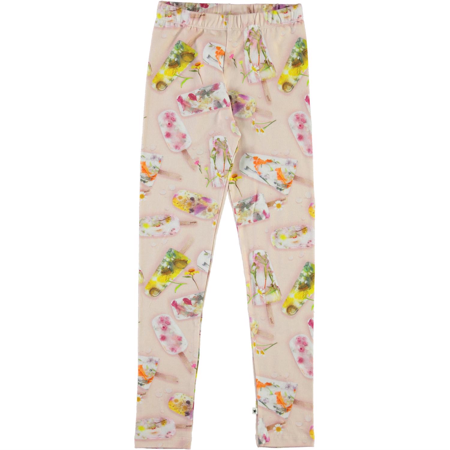 Molo's lange klassieke legging in roze met ijsjes print. De elastische katoenmix en de elastische taille zorgen voor een goede en comfortabele pasvorm.