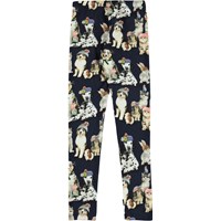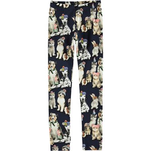 Molo's klassieke lange legging in het donkerblauw met een print van verschillende dieren die mutsen en haarbanden dragen. Het is gemaakt van een rekbare katoenmix en de elastische taille zorgt voor een goede pasvorm.