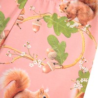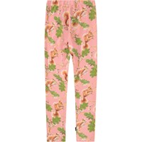 Roze legging gemaakt van biologisch katoen in een aansluitende pasvorm met een elastische taille voor maximaal comfort en om het gemakkelijk aan te trekken. De legging heeft een print van eekhoorns.