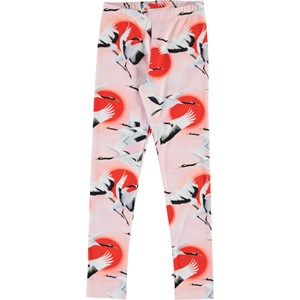 Molo's klassieke lange roze legging met een print van vliegende kraanvogels. Het is gemaakt van een elastische kwaliteit katoen en de elastische taille zorgt voor een goede pasvorm.