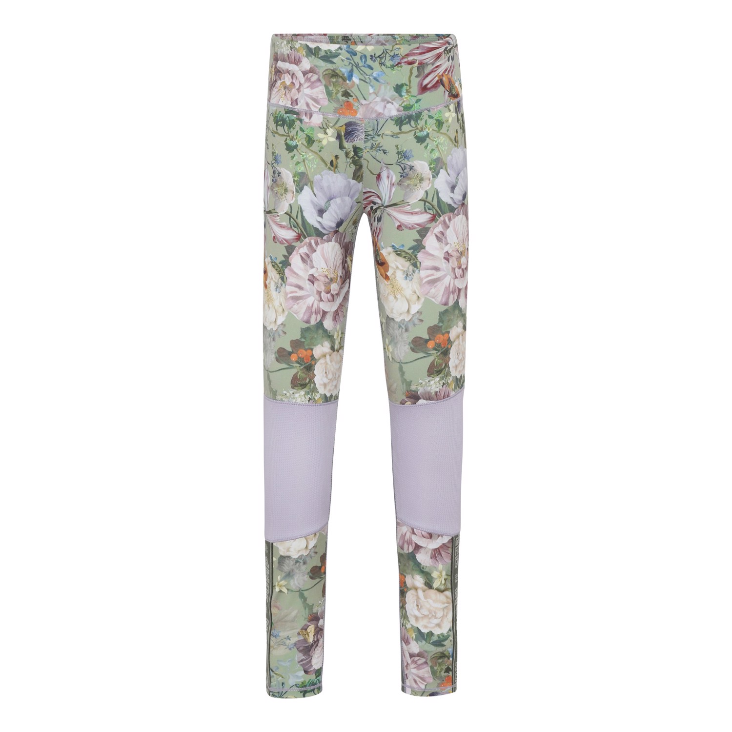 Olympia is een legging in lichtgroen met een bloemenprint en lichtpaarse details op de knieën. De legging zorgt voor perfect comfort en flexibiliteit zodat je je vrij kunt bewegen. Olympia maakt deel uit van Molo's sportcollectie, die mode en sport naadloos laat aansluiten. Draag de Olympia legging met een van Molo’s topjes voor een complete en sportieve look. Molo’s sportcollectie is gemaakt met een unieke en hoogwaardige technologie genaamd HeiQ Smart Temp, die het lichaam ondersteunt om af the koelen. De afkoelfunctie wordt geactiveerd wanneer het lichaam warm en zweterig is. Het wordt gedeactiveerd wanneer het lichaam is afgekoeld. HeiQ Smart Temp zorgt voor optimaal comfort en prestaties. Het is onafhankelijk getest om er zeker van te zijn dat het veilig is voor de huid.