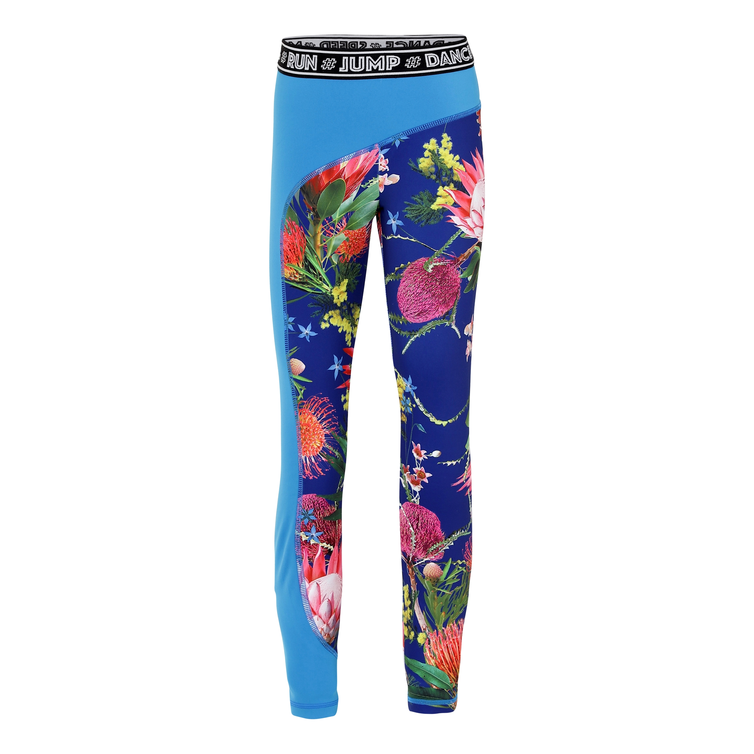 Olympia is een blauw gebloemde sportlegging met een asymmetrisch blauw detail onderaan één pijp. Het heet een elastische tailleband, die een tekstafdruk heeft. Deze sportlegging zorgt voor perfect comfort en flexibiliteit, dit geeft volledige bewegingsvrijheid. Olympia maakt deel uit van Molo's nieuwe sportcollectie, die mode en sport nauw met elkaar verbindt. Draag de Olympia sportlegging met een van Molo's sporttops voor een complete, sportieve look. Molo's sportcollectie is gemaakt met een unieke, hoogwaardige technologie genaamd HeiQ Smart Temp, die het natuurlijke vermogen van het lichaam ondersteunt om zichzelf af te koelen. • De koelfunctie wordt geactiveerd wanneer je warm bent en zweet. • De koelfunctie wordt gedeactiveerd wanneer het lichaam is afgekoeld. • HeiQ Smart Temp zorgt voor optimale prestaties en comfort. • Onafhankelijk getest op veiligheid voor het lichaam. •