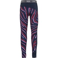 Olympia is een legging in een zebraprint in blauw, paars en bordeaux met een asymmetrisch blauw detail op één pijp. Het heeft een elastische taille met een bedrukte tekst. Het is gemaakt van een elastische kwaliteit katoen en de elastische taille zorgt voor een goede pasvorm. Olympia maakt deel uit van Molo's nieuwe sportcollectie, die helpt bij het integreren van sport en mode. Draag de Olympia-legging met een van Molo's sportshirt voor een complete en sportieve look. Molo's sportcollectie is gemaakt met een unieke, hoogwaardige technologie genaamd HeiQ Smart Temp, die het natuurlijke vermogen van het lichaam ondersteunt om zichzelf af te koelen. De afkoelfunctie wordt geactiveerd wanneer het lichaam warm en zweterig wordt. De afkoelfunctie wordt gedeactiveerd wanneer het lichaam is afgekoeld. HeiQ Smart Temp zorgt voor optimale prestaties en comfort. Onafhankelijk getest op huidveiligheid.