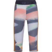 Orlaith is een halflange sportlegging die net onder de knie eindigt. Het heeft een kleurrijke spuitbus print met een blauwe elastische tailleband en een oranje band aan de zijkant van de pijp. Deze sportlegging zorgt voor comfort en flexibiliteit zodat je je onbeperkt kunt bewegen. Orlaith maakt deel uit van Molo's nieuwe sportcollectie, die sport en mode integreert. Draag Orlaith met een van Molo's tops voor een complete en sportieve look. De sportcollectie van Molo is gemaakt met een unieke, hoogwaardige technologie genaamd HeiQ Smart Temp, die het lichaamseigen vermogen om af te koelen ondersteunt. De afkoelfunctie wordt geactiveerd wanneer het lichaam warm en zweterig wordt en wordt vervolgens uitgeschakeld wanneer het lichaam is afgekoeld. HeiQ Smart Temp zorgt voor optimaal comfort en prestaties. Het is onafhankelijk getest om er zeker van te zijn dat het veilig is voor de huid.