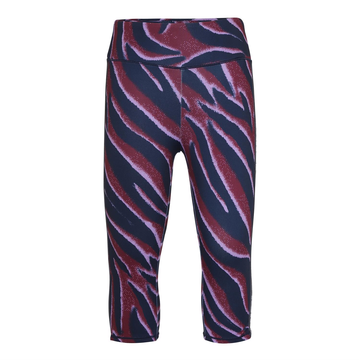 Orlaith is een korte legging in een blauwe, paarse en bordeaux rode zebraprint met een elastische taille. De sportlegging zorgt voor perfect comfort en flexibiliteit, terwijl het volledig en onbeperkt bewegen mogelijk maakt. Orlaith maakt deel uit van Molo's nieuwe sportcollectie, die helpt bij het integreren van sport en mode. Draag de Orlaith legging met een van Molo's sporttopje of shirt voor een complete, sportieve look. Molo's sportcollectie is gemaakt met een unieke, hoogwaardige technologie genaamd HeiQ Smart Temp, die het lichaam ondersteunt om af te koelen. De afkoelfunctie wordt geactiveerd wanneer het lichaam warm en zweterig wordt en schakelt vervolgens uit wanneer het lichaam is afgekoeld. HeiQ Smart Temp zorgt voor optimaal comfort en prestaties. Het is onafhankelijk getest om te garanderen dat het veilig is voor de huid.