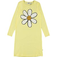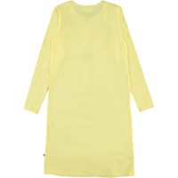 Geel nachthemd met lange mouwen en een print van een vrolijke bloem op de voorkant.