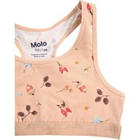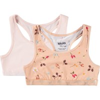 Duppak met topjes gemaakt van zacht biologisch katoen met een racerback en een brede elastische band met sterren die zorgen voor een goede pasvorm en hoog comfort. Het ene topje is roze en de andere is koraal met een print van dennenappels, bessen en bloemen. Combineer het met de bijpassende slipjes voor een complete en bijpassende set.