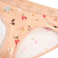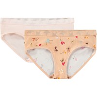 Duopak  van slipjes gemaakt van zacht biologisch katoen. De slipjes hebben een brede elastische band met sterren, wat zorgt voor een goede pasvorm en comfortabel is om te dragen. Het ene slipje is roze en het andere is koraalkleurig en heeft een print van dennenappels, bessen en bloemen. Combineer het met de bijpassende topjes om een complete set te krijgen.