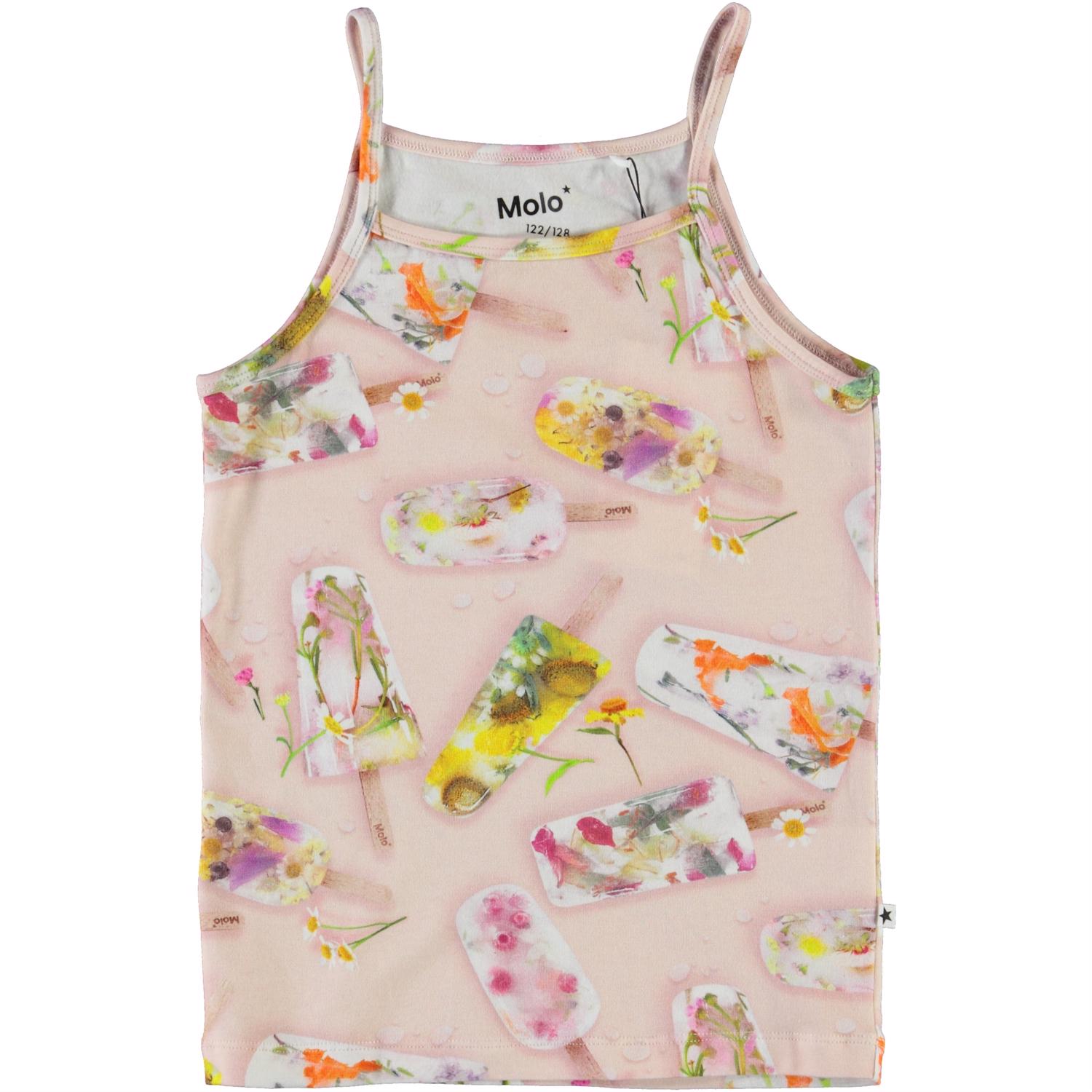 Janice is een hemdje met een ijsjesprint. Molo heeft deze prachtige bloemen ingevroren om deze print te maken.