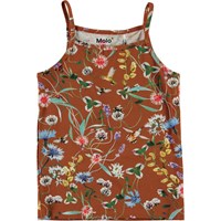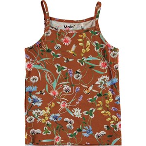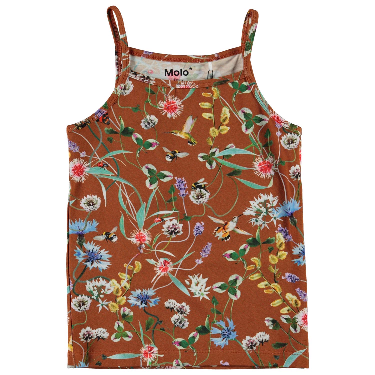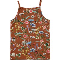 Janice is een bruin hemd met een print van wilde bloemen en kleine insecten.