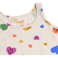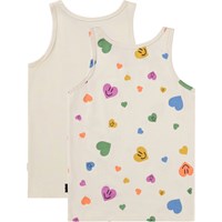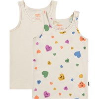 Duopak hemdjes met brede schouderbandjes en ronde hals gemaakt van zacht biologisch katoen. De set bevat één beige en één met een print van kleurrijke lachende hartjes.