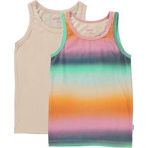 Duo pak hemdjes met brede bandjes. De ene is in roze, de andere in een vervaagde kleuren print.