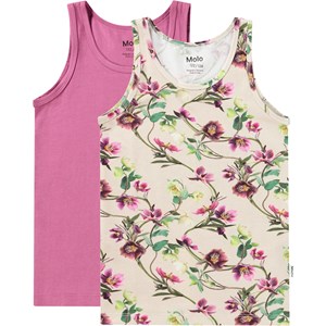 Duopak hemdjes van biologisch katoen. Eén is roze en de ander heeft een all-over print van kerstrozen in tinten roze en wit. Combineer het met de bijpassende onderbroeken voor een complete set.