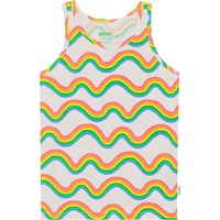 Set van 2 hemdjes van zacht biologisch katoen. De hemdjes hebben brede bandjes en zijn door het zachte rekbare katoen uiterst comfortabel. Eén hemdje is wit. Het andere hemdje heeft een print van Molo's regenbogen. Voor een complete set draag de hemdjes met de bijpassende slipjes.