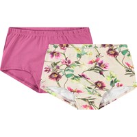 Duopak onderbroeken van biologisch katoen. Een is roze en het andere heeft een all-over print van kerstrozen in tinten roze en wit. Combineer het met de bijpassende hemdjes voor een complete set.