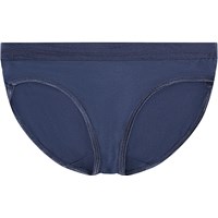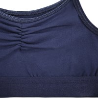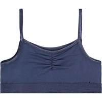 Donkerblauw ondergoed gemaakt van zacht en rekbaar viscose. Het topje heeft dunne elastische bandjes en een gerimpelde naad aan de voorkant die het topje een mooie pasvorm geeft. Het topje en de slip hebben een brede elastische band om een goede pasvorm en comfortabele pasvorm te garanderen.