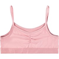 Roze ondergoed gemaakt van zacht en rekbaar viscose. Het topje heeft dunne elastische bandjes en een gerimpelde naad aan de voorkant die het topje een mooie pasvorm geeft. Zowel het topje als de slip hebben een brede elastische band voor een goede pasvorm en comfort.