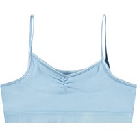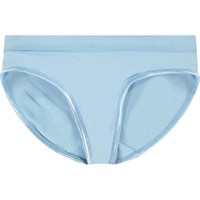 Lichtblauw ondergoed van zachte en rekbare viscose. De top heeft dunne elastische bandjes en een geplooide naad aan de voorkant, wat zorgt voor een mooie pasvorm. Zowel de top als het slipje heeft een brede elastische band, wat zorgt voor een goede pasvorm en comfort.