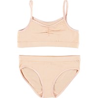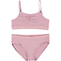 Jinny is een rode ondergoed setje. Zowel de bh top als de onderbroek heeft een brede elastische boord, die zorgt voor een goed pasvorm.
