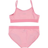 Jinny is een roze set ondergoed. Zowel de bovenkant als de onderkant heeft een brede elastische rand die zorgt voor een comfortabele pasvorm.