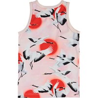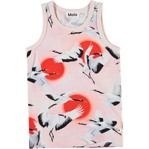 Molo's klassieke hemd met een print van kraanvogels op een roze achtergrond.