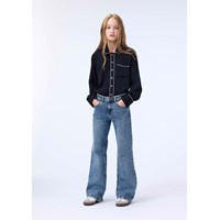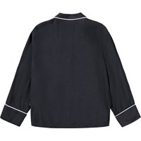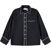 Pyjamashirt gemaakt van zwarte viscose. Het shirt heeft witte biezen op de kraag, langs de knopen, bij de borstzak en de mouwen. Combineer het met de bijpassende broek voor een complete look.