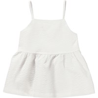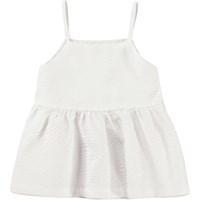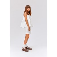 Rani is een wit hemdje van gestructureerd katoen. Rani heeft een ruimvallende pasvorm en heeft een naad in de taille voor een volumineus effect.