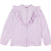 Rassine is een licht paarse blouse met vrouwelijk ruches.