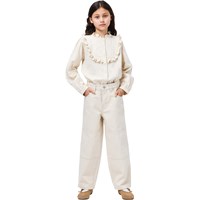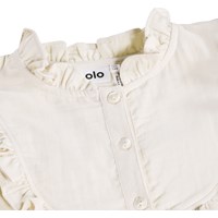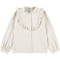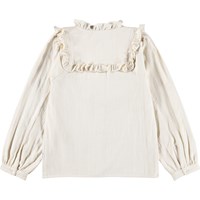 Gebroken witte blouse gemaakt van zachte, biologische katoen met een ruchekraag, een knoopsluiting aan de voorkant en manchetten. De blouse heeft een normale pasvorm en fijne ruchedetails aan de voor- en achterkant.