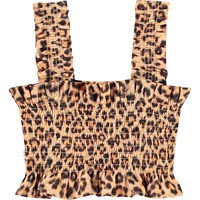 Crop top met cheetaprint vanbiologisch katoen met gerimpeld effect, ruche rand en brede bandjes. Combineer de top met de bijpassende broek voor een complete set.