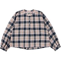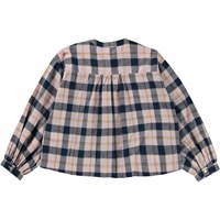 Roze blouse van zacht katoen met een donkerblauwe en gele ruit. Deze blouse is van 100% katoen, heeft een ronde hals met mandarijnkraag, lange mouwen met smalle manchetten, een knoop- en knoopsluiting aan de voorzijde en een plooi aan de achterzijde voor extra volume. De blouse valt losjes.