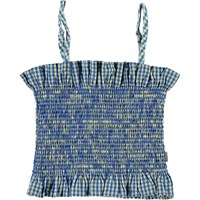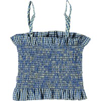 Rozetta is een blauwe geruite crop top met schouderbandjes. Draag de top met bijpassende short.