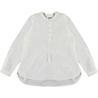 Runaris is een wit poplin blouse met lange mouwen en knoopsluiting.