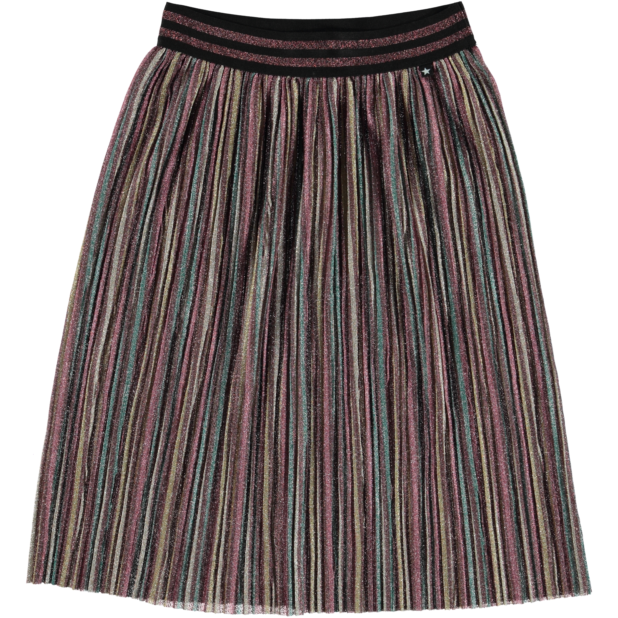 De Bailini rok is een van Molo's favorieten. Het ziet er geweldig uit op feestjes, maar het is ook perfect voor dagelijks gebruik met een casual t-shirt. Deze rok heeft prachtige glitter strepen en een gestreepte met glitter tailleband.
