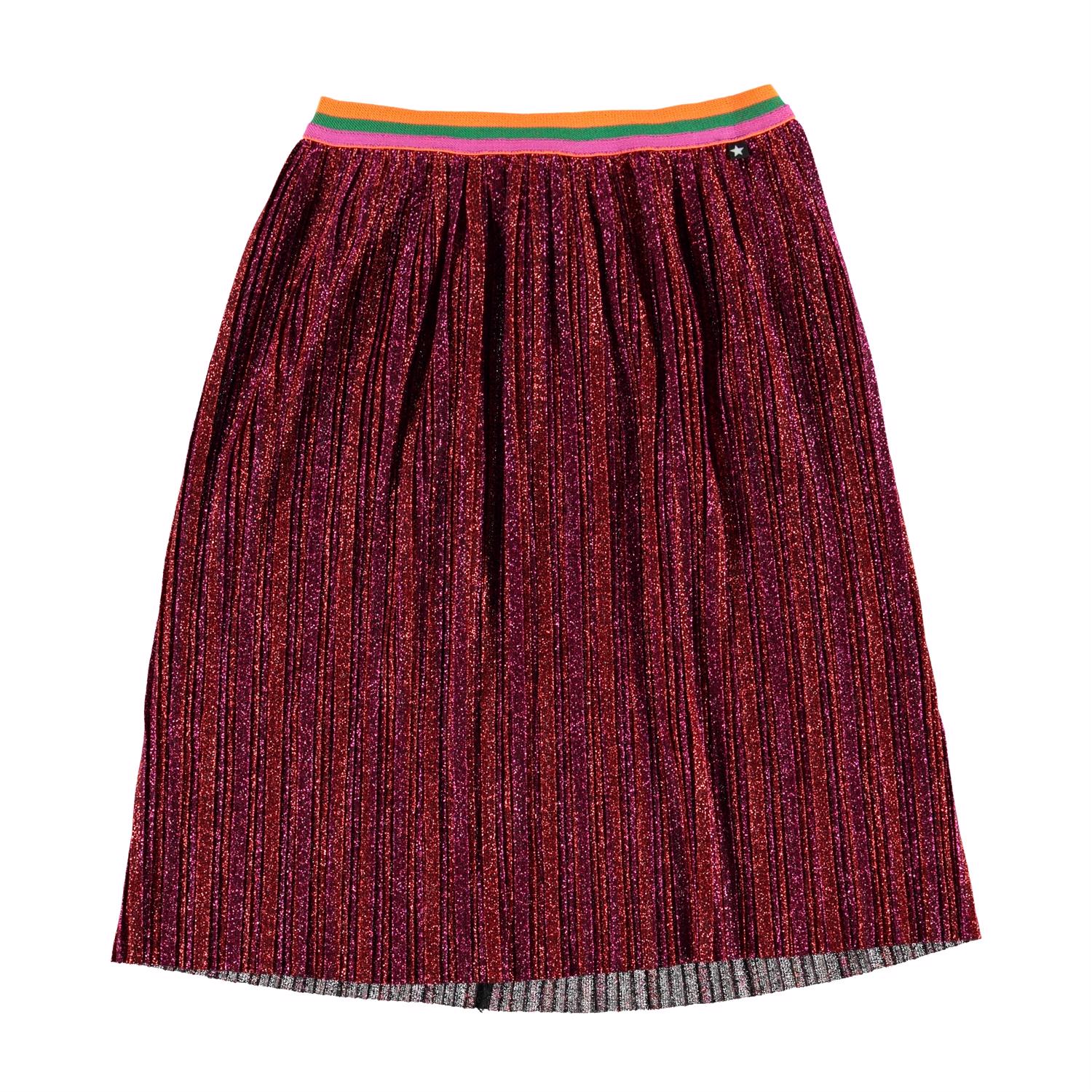 De Bailini is een van Molo's favorieten en is perfect voor zowel feestjes als voor overdag met een casual top. De rok is rood glitterend en heeft plooitjes en een elastische taille met mooie strepen.