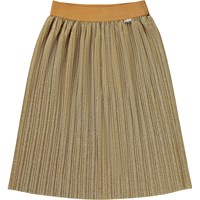 Metallic gouden midi rok met plooien. Deze rok is gemaakt van een polyamidemix en heeft een elastische taille om het aan- en uittrekken makkelijker te maken. Het heeft een normale pasvorm. De rok glanst als puur goud, dus het is chic genoeg voor feestjes, maar ook stoer genoeg voor dagelijks gebruik.